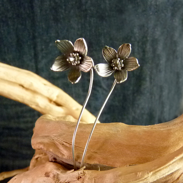 Něžňoulinké náušničky z hrušňových květů jsou netradičně řešené- provlékají se jako klasické visací náušničky, ale květ se dotýká ouška a vypadají jako puzetkové- květinka je těsně v oušku. Dobře drží a nemusíte se obávat ztracení. Jsou vyvážené.