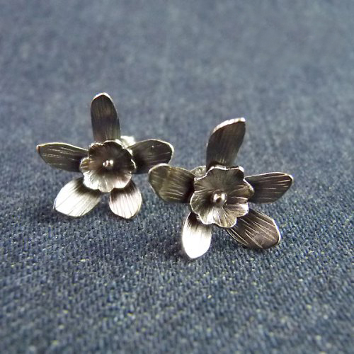 Květ je jemně tepaný a tvarovaný. Zapínání je na puzetku.